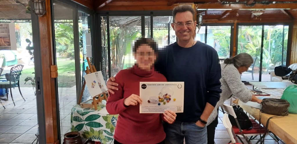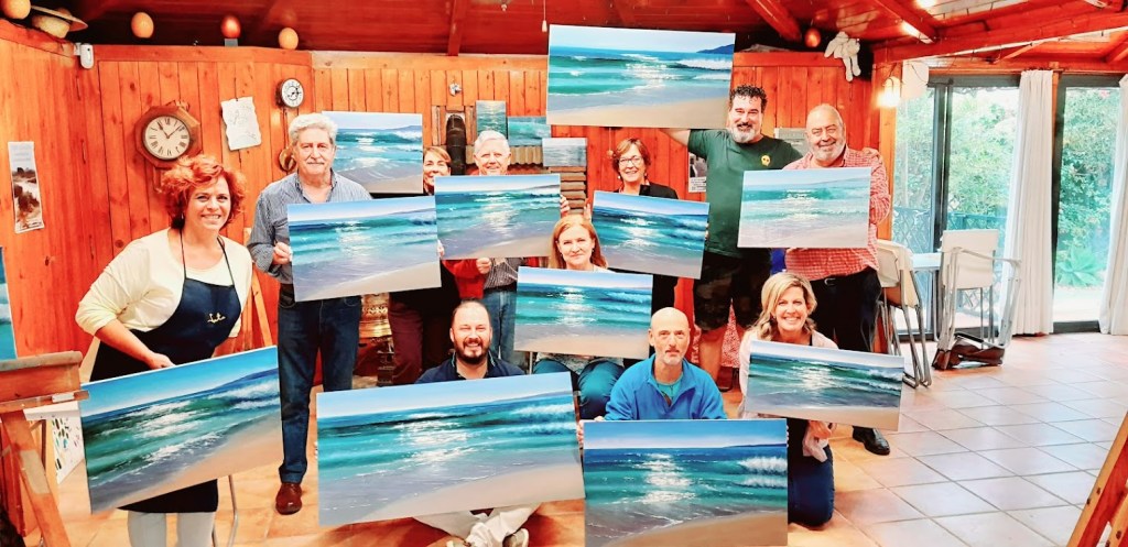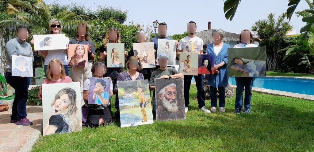 Durante el curso ofrecemos café, refrescos, agua y otros, y al finalizar, entregamos un diploma firmado por el pintor. Todo está orientado a disfrutar de una experiencia única y enriquecedora.